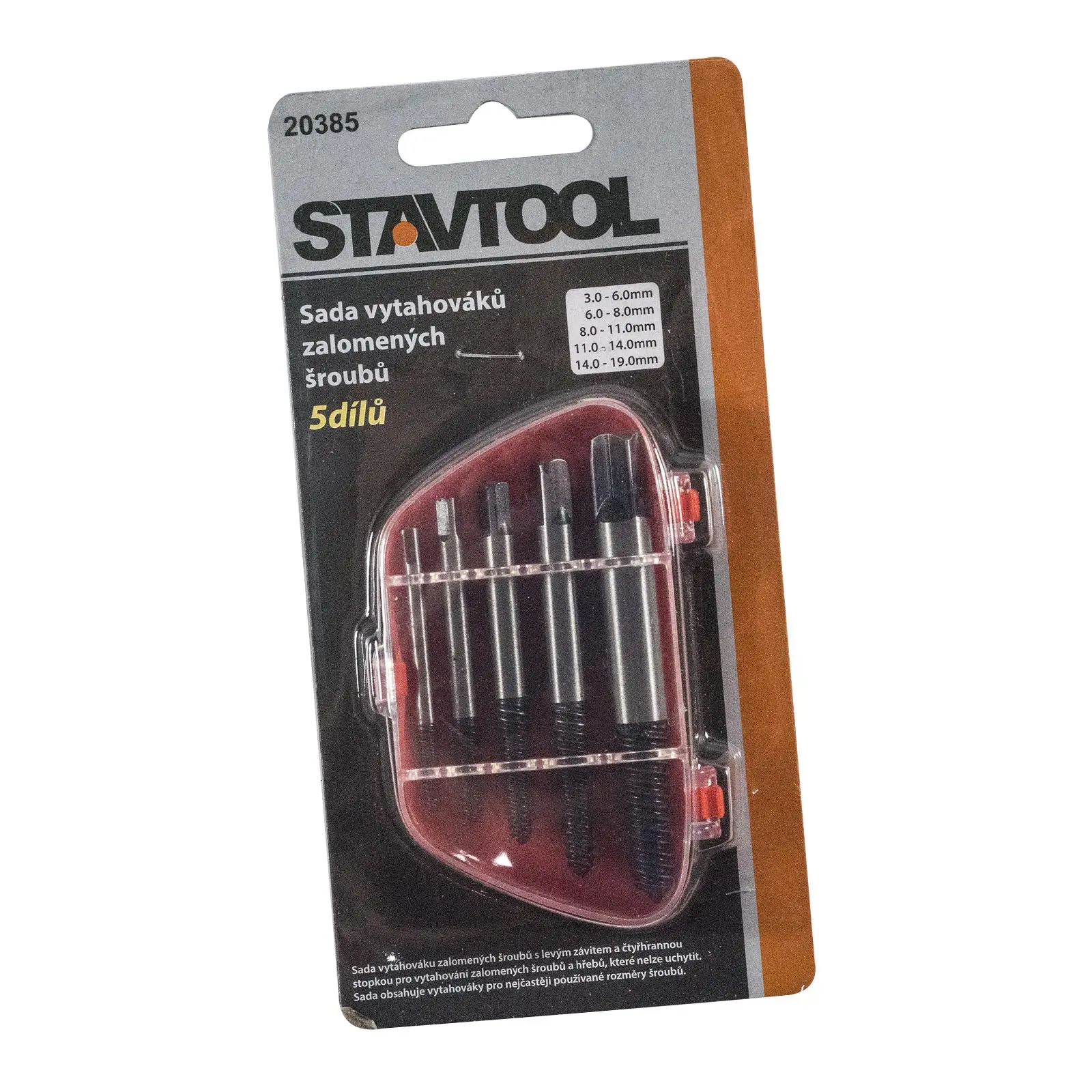Sada vytáhováků zalomených šroubů 5 dílů, plastový obal.