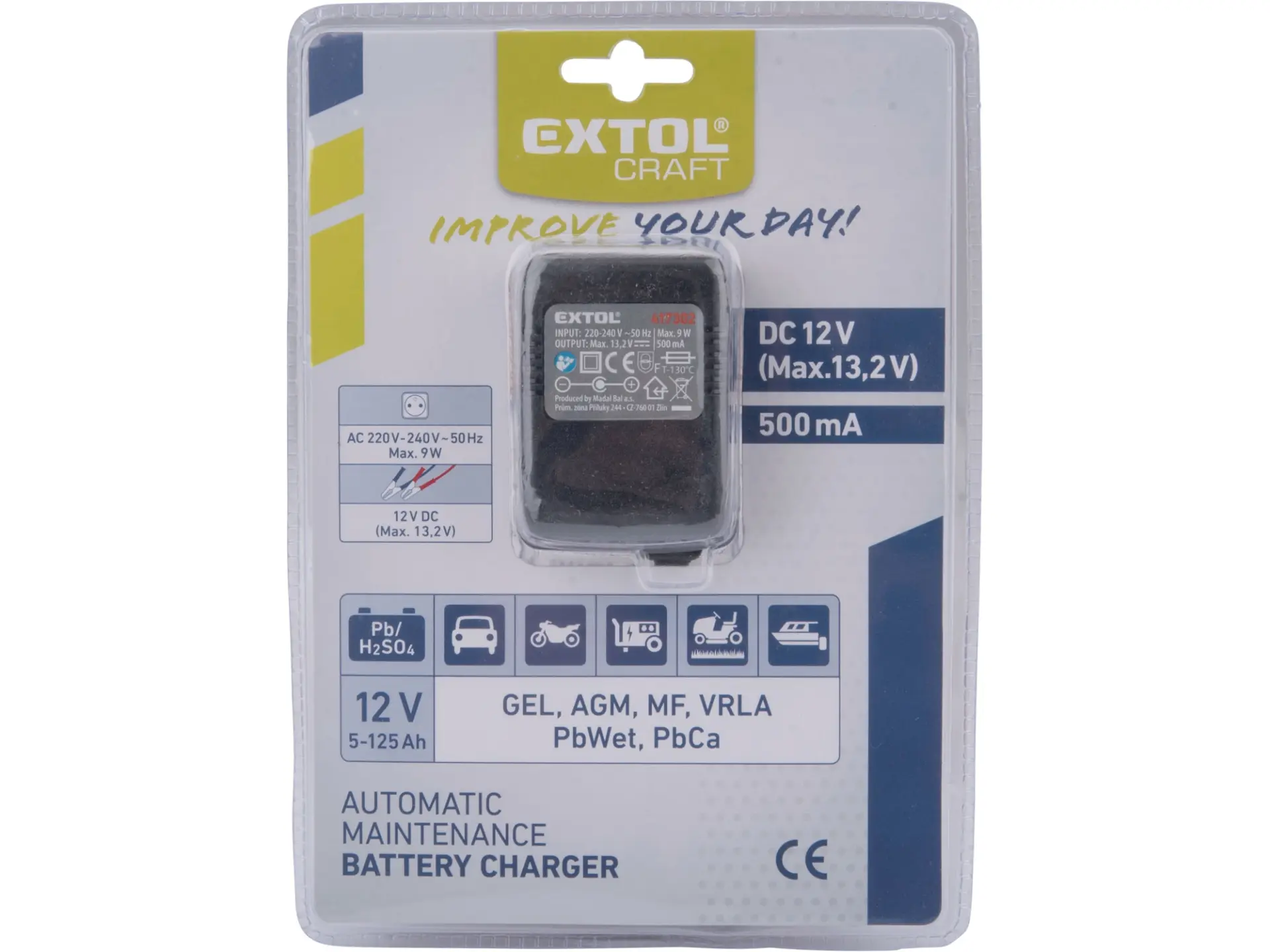 Malá udržovací nabíječka bez ovládacích tlačítek s nabíjecím proudem 0,5A a napětím max. 13,2V je určena k udržování 12V olověných akumulátorů s kapacitou 5-125Ah v málo používaných vozidlech a zařízeních v provozuschopném stavu, např. v motocyklech, skútrech, autech, lodích, zahradních strojích, elektrocentrálách s elektrickým startem, kdy je akumulátor málo nebo není vůbec dobíjen provozem zařízení, např. v nepoužívaných zařízeních na výstavách, v zimním období apod. Pokud je akumulátor delší dobu vybitý, vede to k jeho nevratnému poškození. Nabíječka je určena pro všechny typy olověných 12V akumulátorů.