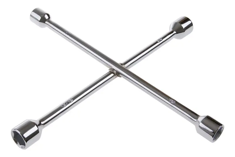 Klíč na kola křížový 17-19-21-13/16 Křížový klíč vhodný k snadnému utahování a povolování matic kol o rozměrech 17, 19, 21 mm a 13/16.