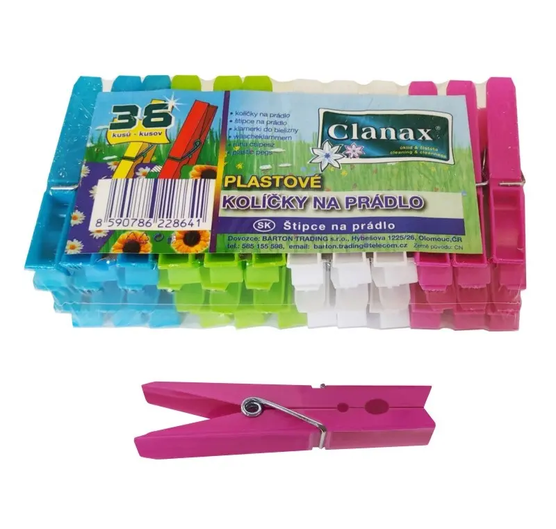 Kolíčky na zavěšení prádla, které usnadňují sušení oblečení na šňůře.