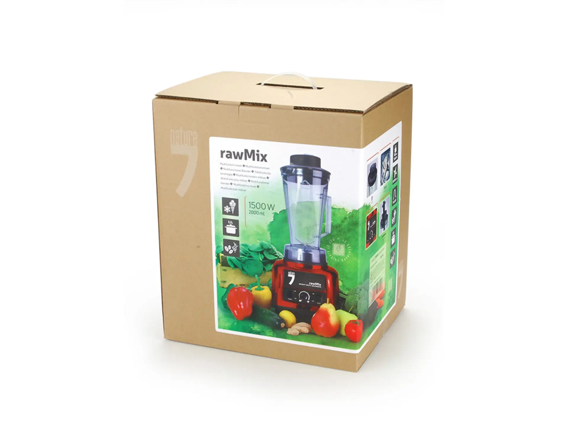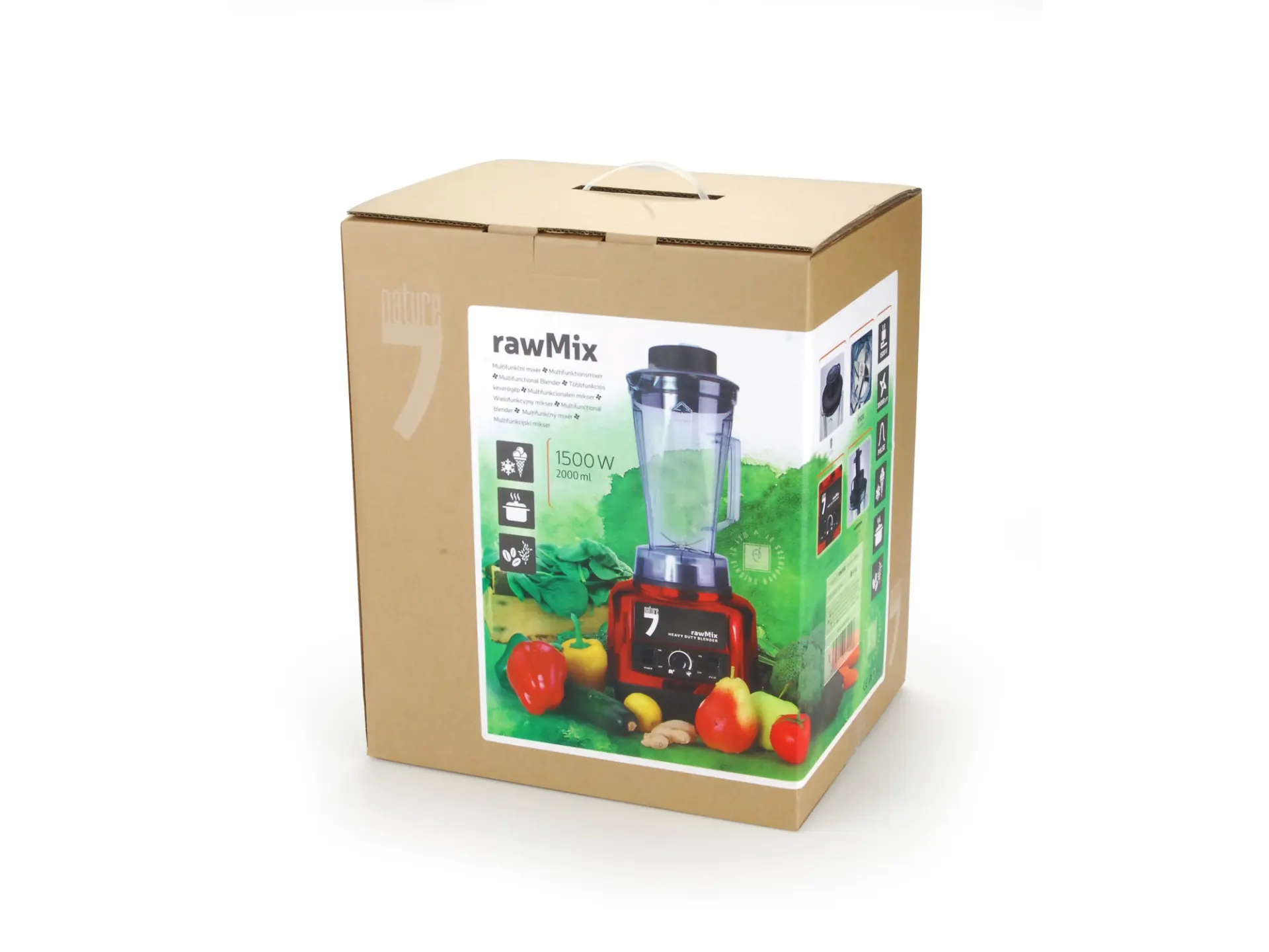Mixér rawMix je multifunkční mixér, který dokáže mixovat, míchat, sekat, drtit atd. Dokáže namixovat jakýkoliv druh potravin a vždy dosáhne vynikajícího výsledku.Mixér bez problémů zvládne vyrobit smoothie, ovocné a zeleninové koktejly, ovocné dezerty, dětské přesnídávky, sorbety, frappé, pomazánky, omáčky, dipy, salsy, pesta, marinády, zmrzlinu i polévku.Mixovací nádoba je vyrobena z kvalitního, odolného plastu. Můžete v ní vyrábět ledovou zmrzlinu, ale také horkou polévku. Přístroj zvládne i tvrdá semena, ořechy a poradí si také s tvrdou vlákninou a umožní vám konzumovat blahodárné živiny, které většinou zůstávají nevyužity.Mixovací nádoba má velký objem a umožňuje pohodlné zpracování většího množství suroviny. Víko mixovací nádoby je opatřeno nálevkou, která umožňuje přidávání surovin v průběhu mixování. Pomocí přibaleného pěchovadla urychlíte mixování hustých nebo mražených surovin, které při by při zpracování mohly vytvářet vzduchové kapsy.Vzhledem k velkému výkonu a ostří nožů je tento mixér vhodný k výrobě RAW stravy, každý vitarián by ho měl mít ve své kuchyni.RawMix je vhodný pro časté používání v domácnosti, ale i do menších komerčních provozoven. Jeho ovládání je jednoduché a spolehlivé. Plynulá regulace otáček a tlačítko „PULSE“ pro maximální výkon, usnadňují přípravu téměř každé potraviny.Motor mixéru je chráněn dvěma systémy, jednak proti proudovému přetížení, ale také proti přehřátí, což prodlužuje životnost přístroje. Ochranu při práci zajišťuje bezpečnostní spínač, který umožní spuštění mixéru až po nasazení mixovací nádoby na motorovou jednotku.Zmrzlina:Nejen v létě si můžete připravit zmrzlinu i bez zmrzlinovače. Mixér se svým výkonem a ostrými noži zpracuje mraženou surovinu tak rychle, že se nestihne zahřát. Během chvilky spojí a našlehá suroviny pro přípravu vaší oblíbené zmrzliny.Do mixovací nádoby vložte jogurt nebo smetanu (záleží na vašich kalorických možnostech), mražené ovoce a případně trochu cukru. Mixujte 30 sekund, nebo maximálně jednu minutu a můžete servírovat čerstvou domácí zmrzlinu.Vaření:Pro přípravu rychlé polévky nebo omáčky, vložte do mixovací nádoby potřebné suroviny a mixujte 4 – 6 minut. Dochuťte a podávejte.Semena, ořechy a jiné suché plody:Všechny suroviny, které zpracováváte v mixéru by měly být vlhké. Chcete-li zpracovávat samotná semena, nebo ořechy, vždy je předem namočte.Pokud budete zpracovávat suchá semena a ořechy, nemixujte je déle jak dvě minuty. Častým zpracováváním suchých semen a ořechů se tupí nože a dochází k postupným změnám vzhledu mixovací nádoby. Ta se časem obrousí a zneprůhlední.Před prvním požitím si pozorně přečtěte návod k použití.Pro inspiraci:Ranní pohlazení- 1/3 dobře vyzrálého ananasu- šálek pomerančů- šálek jablek- voda podle požadované hustotyVše rozmixujte dohladka. Chcete-li mít nápoj ihned vychlazený, nahraďte část vody ledovými kostkami.Tekuté jídlo- 3 – 4 banány- hrst předem namočených datlí nebo fíků- 1 – 2 hrsti jahod- svazek petrželové natě - 1 hlávky listového salátu (hlávkový, římský, ledový)Vše umixujte dohladka a podle potřeby přidejte vodu.Nebojte se experimentovat. Pro začátek vám nabízíme osvědčené ovocné kombinace:- jahody, borůvky a maliny- jablko, hruška a třešně- černý rybíz a banán- ananas, kiwi a pomeranč- pomeranč, banán