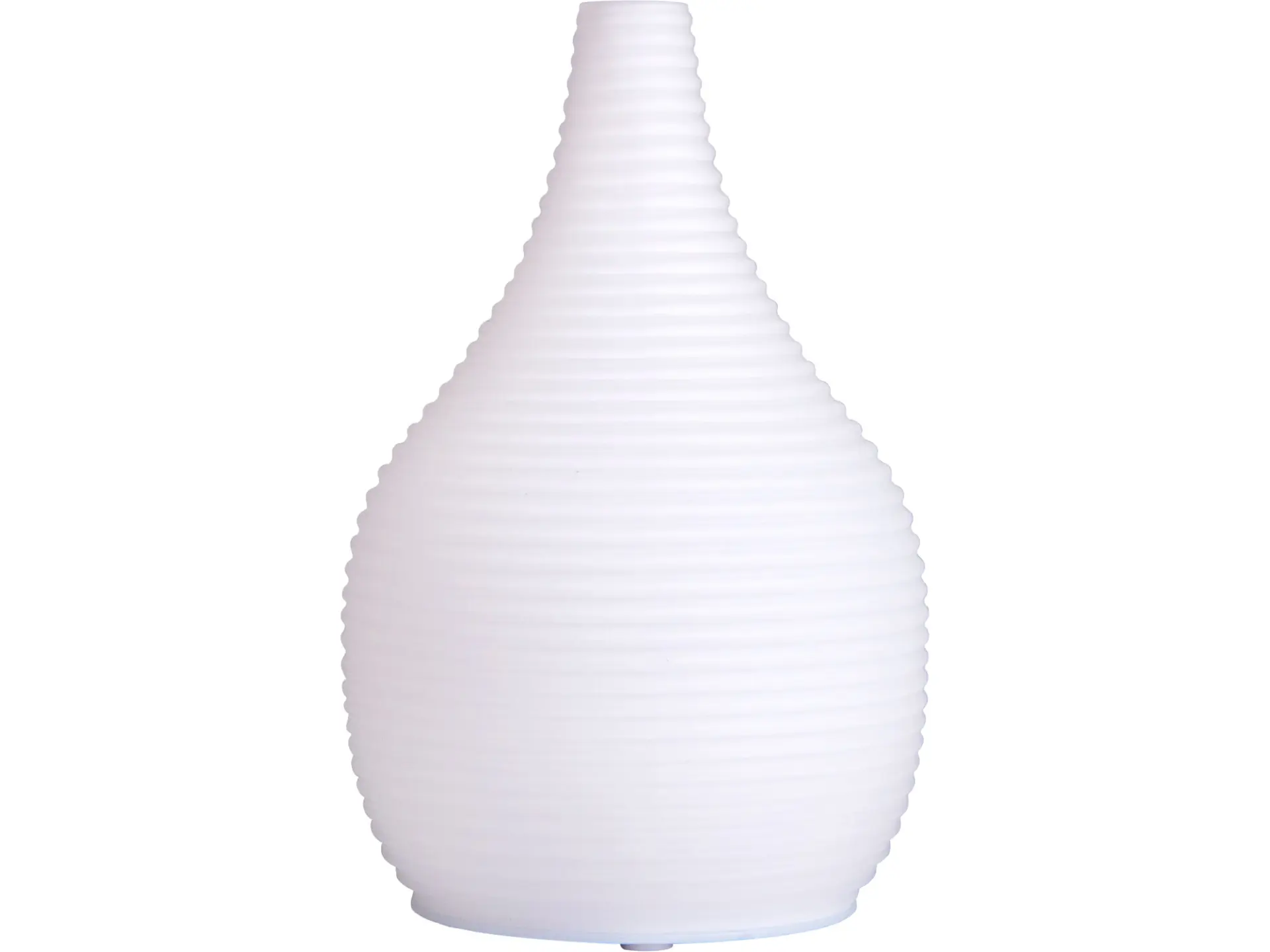 Zvlhčovač vzduchu s difuzérem vyrobený z mléčného skla. Aromatizuje a zvlhčuje vzduch kombinací účinků vodní mlhy a esenciálních olejů. Pomocí jemného ultrasonického vlnění rozkládá esenciální oleje na extrémně malé mikročástice, aniž by je zahříval. Oleje si tak zachovávají původní vůni i léčivé účinky. Aroma difuzér vám pomůže vytvořit z každého pokoje vonící oázu a navodit relaxační atmosféru.Bez přidání esenciálního oleje vám aroma difuzér poslouží jako zvlhčovač vzduchu. Přidáním konkrétního esenciálního oleje můžete sobě, nebo vašim blízkým pomoci s různými obtížemi. Postačí pár kapek kvalitního oleje a můžete ulevit rýmě, kašli, bolestem hlavy, nebo špatnému usínání. Správně zvolený olej vyčistí vzduch, nebo vám jednoduše zpříjemní pobyt v místnosti, ve které se právě nacházíte.Díky neutrálnímu designu z mléčného skla stylově doplní vybavení všech obytných prostor, dětských pokojů, jednacích místností, masážních salónů, wellness center apod. Vhodně zvolenými esenciálními oleji můžete podpořit relaxační atmosféru v ložnici, dezinfekci vzduchu či klidný spánek v dětském pokoji. Koncentraci v pokoji studenta anebo uvolněnou komunikaci, ať už doma nebo v pracovním prostředí.Používejte vždy kvalitní oleje. Použitím levných, umělých olejů sice vytvoříte voňavé prostředí, ale tělo a mysl si neodpočinou. Citlivým osobám může naopak uškodit. Například bolestí hlavy apod.Během provozu aroma difuzéru lze libovolně a jednoduše nastavit světelné efekty, které vytvoří ve vašem pokoji velmi příjemné prostředí a navodí relaxační atmosféru. Aroma difuzér je vhodný všude, kde je z bezpečnostních důvodů nemožné použít otevřený oheň (svíčky v aroma lampách). Kombinuje účinky vodní mlhy a esenciálních olejů.Obsluha aroma difuzéru je velmi jednoduchá. Do zásobníku nalejete vodu, nejlépe destilovanou. Nakapete několik kapek esenciálního oleje a přístroj zapnete stiskem tlačítka. Aroma difuzér začne okamžitě vytvářet vodní mlhu a rozptylovat olej do vzduchu. Dalšími stisky můžete nastavit různé barvy v intenzivnější nebo světlejší verzi, které zůstanou nastaveny během provozu přístroje, dokud je nezměníte. Barevné světlo procházející mléčným sklem vytváří příjemný světelný efekt. Nemusíte kontrolovat množství vody v zásobníku. Po vyprázdnění se aroma difuzér sám vypne.