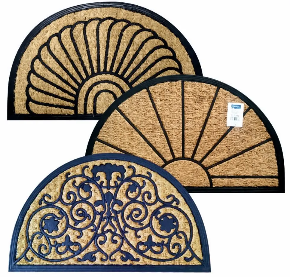 Půlkruhová rohožka, která kombinuje kokosové vlákno a gumu, skvěle padne ke každým dveřím.