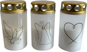 Tradiční hřbitovní svíčka Vatikánka s motivem. Mix druhů dle skladové dostupnosti, motiv nelze vybrat.