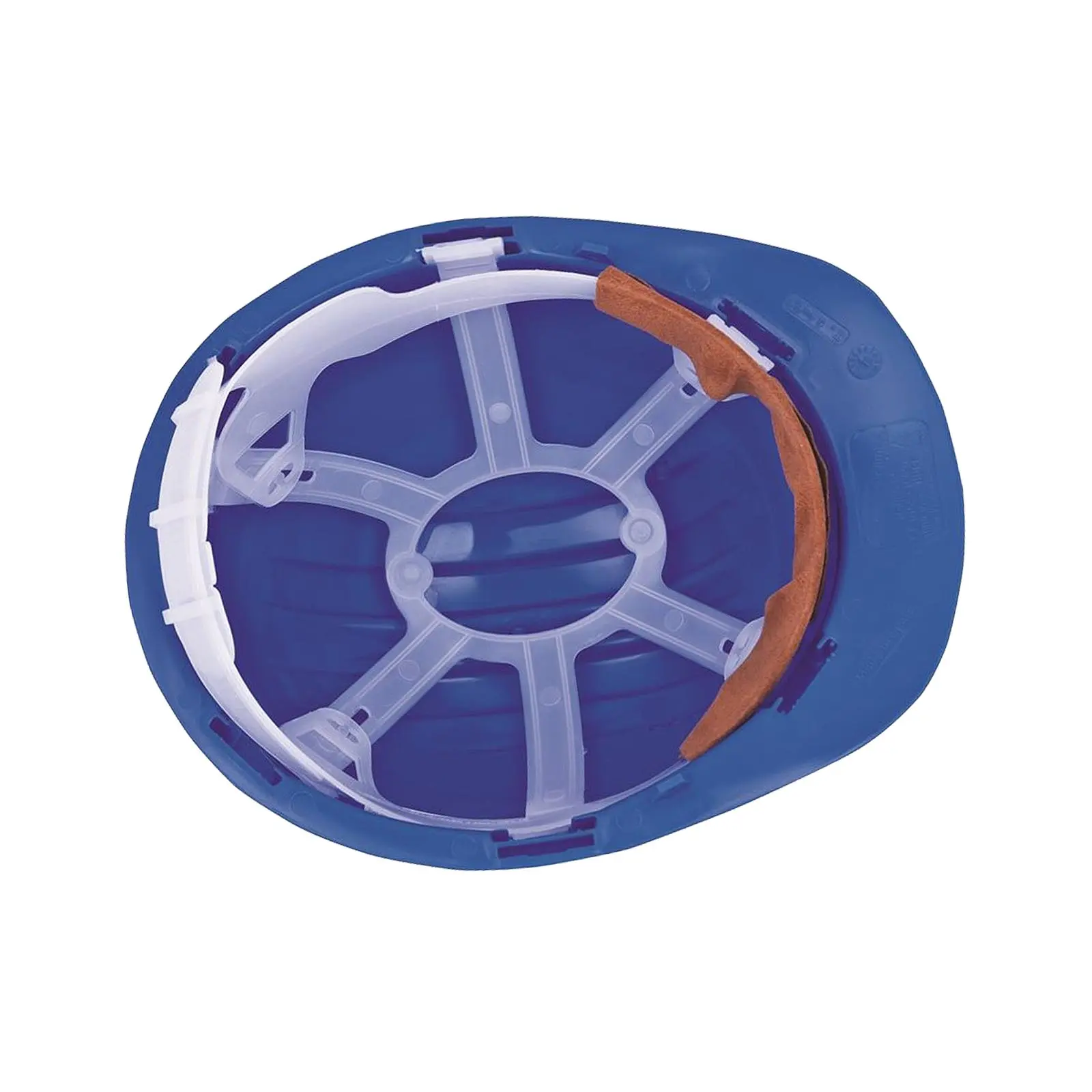 Lehká polyetylénová fasetová skořepina (přilba) s prodloužením nad zátylkem, zavěšená ve čtyřech bodech na textilních páscích