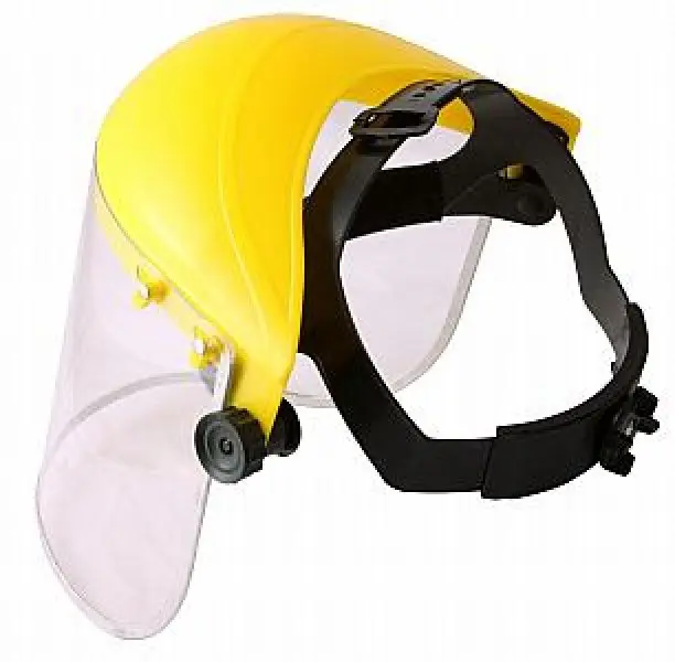 Čirý ochranný štít z polykarbonátovým zorníkem, jednoduše nastavitelná velikost díky otočnému kolečku, potítko vpředu, CE EN 166.