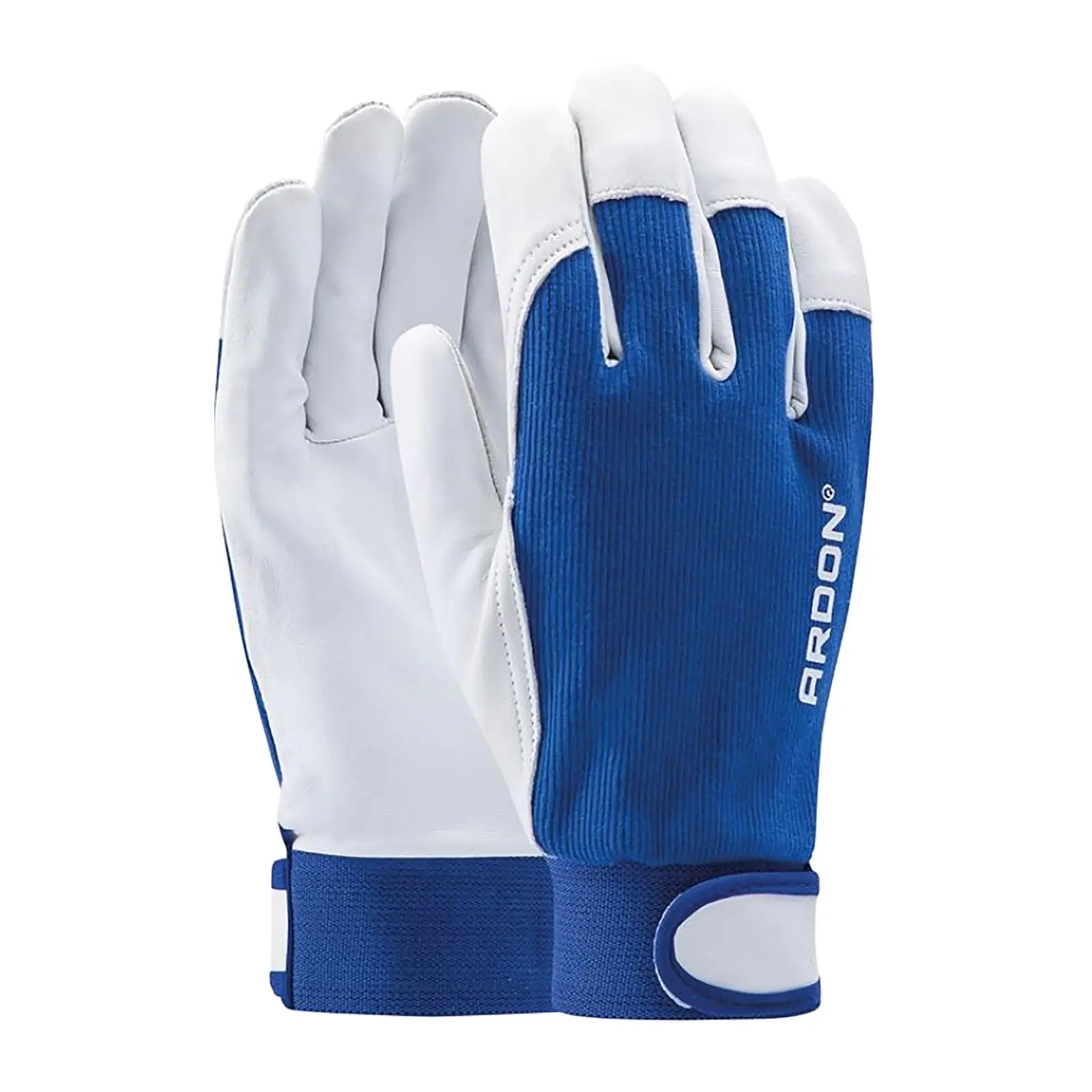 Dlaň z jemné lícové ovčiny, hřbet z bílé bavlněné tkaniny. Překryté prsty, náplet na zápěstí.