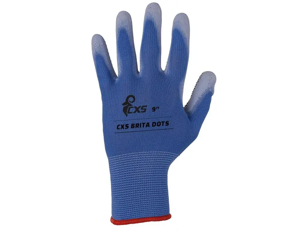 Pletené bezešvé rukavice s PVC terčíky v dlani. Dlaně a prsty povrstveny polyuretanem, pružná manžeta. Doporučené aplikace: automobilový průmysl, elektronika, logistika, skladování, montáž a balení malých součástek, zahrada, lehké montáže.