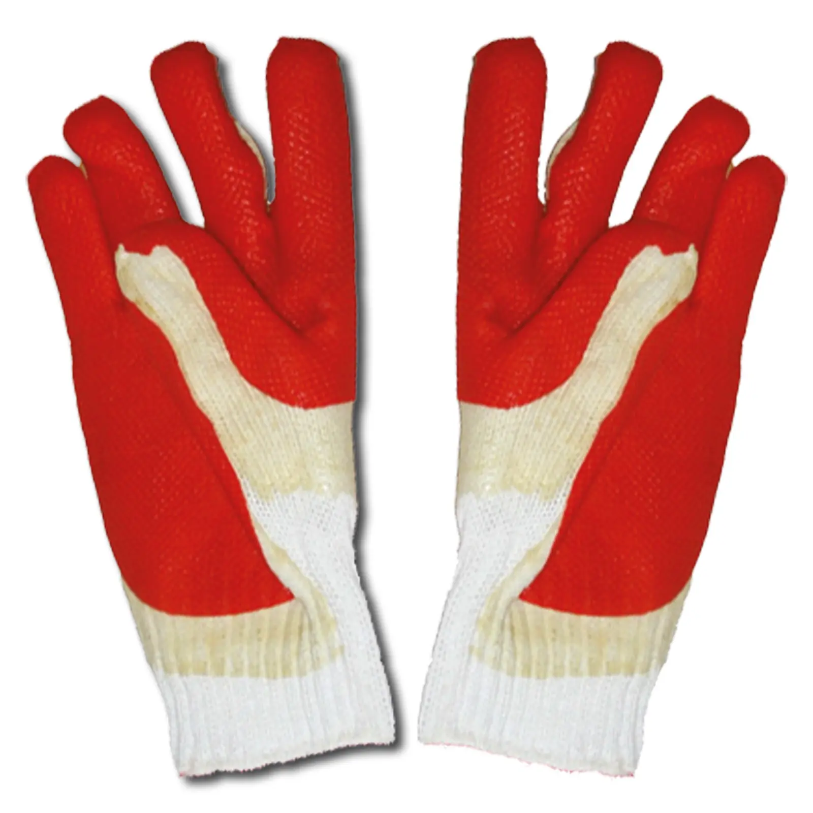 Rukavice, hrubý úplet polomáčený v latexu, silná vrstva latexu ve dlani.