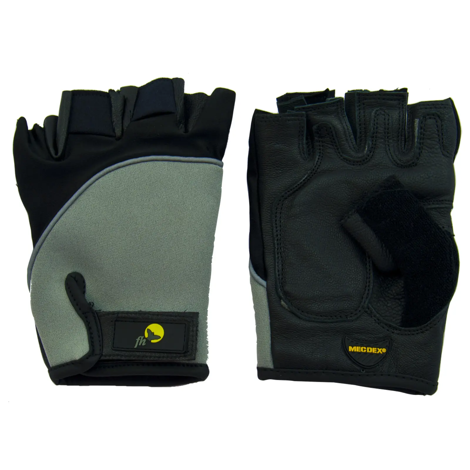 Pracovní kombinované rukavice Fuscus bez prstů jsou vyrobeny z jemné kozinky. V dlani mají vloženou gelovou vložku. Na hřbetu jsou vyrobeny z Lycry a neoprenu. Navíc mají praktickou stahovací manžetu na suchý zip.