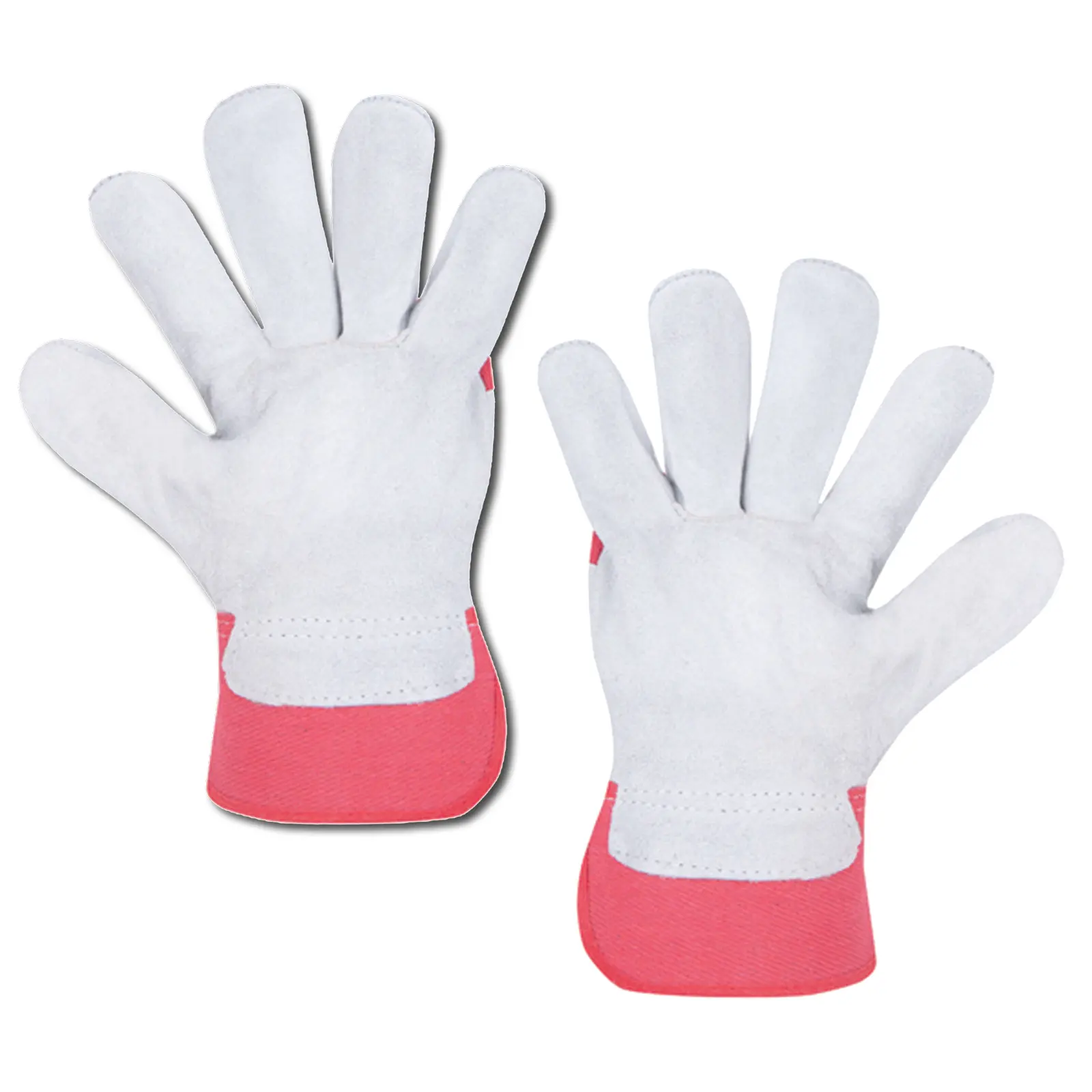 Kvalitní oranžová hovězí štípenka, hřbet z červené bavlny, teplá podšívka, vyztužená manžeta