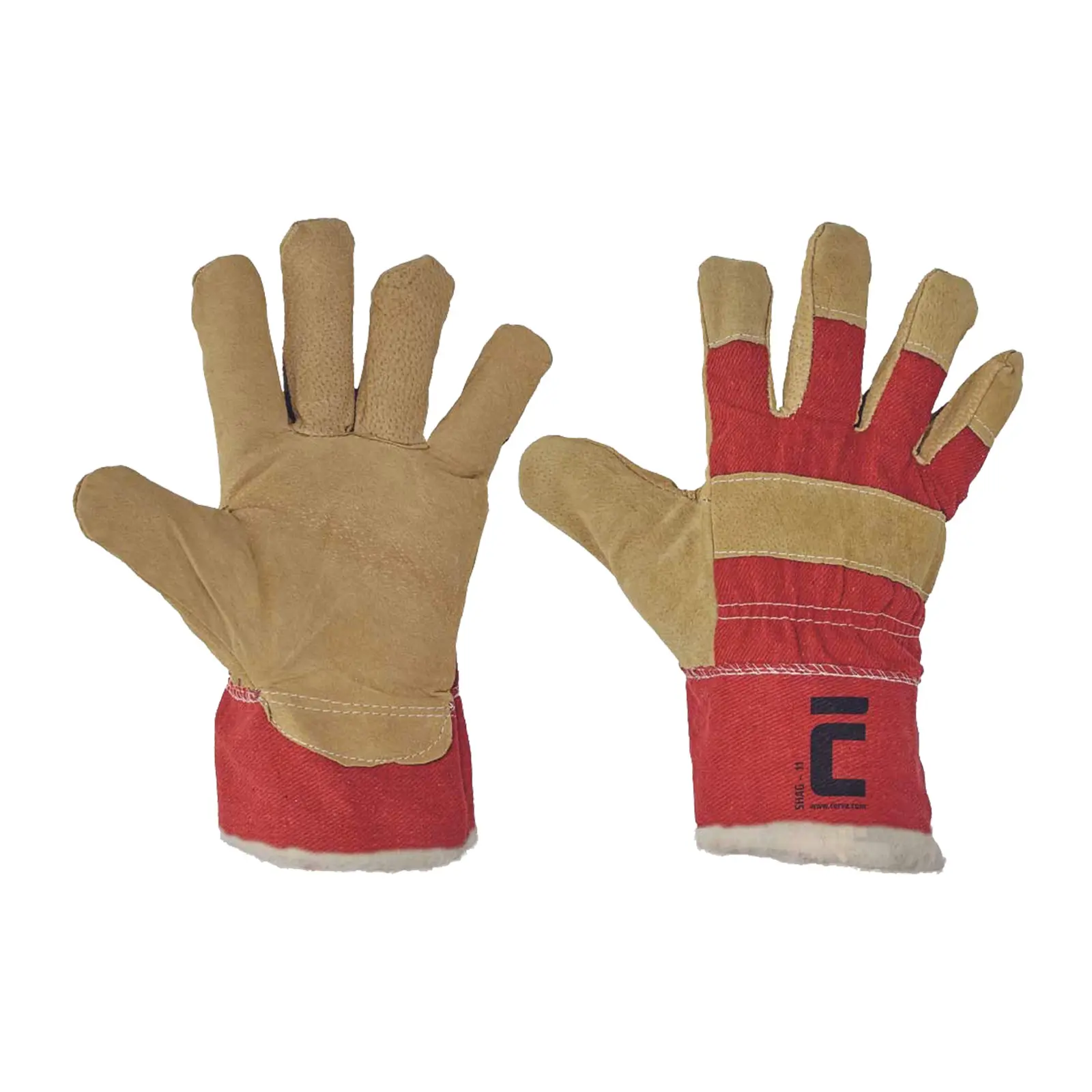 Dlaň z vepřové štípenky, hřbet a manžeta z bílé bavlněné tkaniny, teplá podšívka.