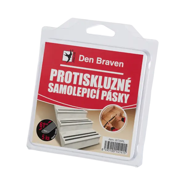 V ekonomickém hobby balení s vysokou lepivostí ke kameni, dřevu a mramoru nejen pro interiér. Zabraňuje podklouznutí na hladkých schodišťových stupních, při namrznutí povrchu nebo po dešti. Konce pásky jsou elegantně ukončeny zaoblením.