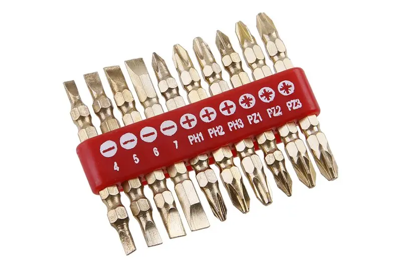 Sada 10 ks oboustranných bitů z chrovanadiové oceli v plastovém organizéru( - 4,5,6,7 + PH1,PH2,PH3, x PZ1,PZ2,PZ3).