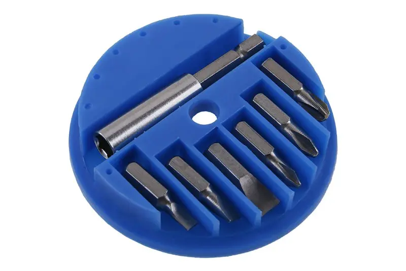 Bity v plastové kruhové krabičce s otvorem pro vysunutí potřebného bitu. Sada obsahuje 7 ks s manetickými hroty( - 3,5,7 + PH1,PH2PH3). Pro hobby použití.