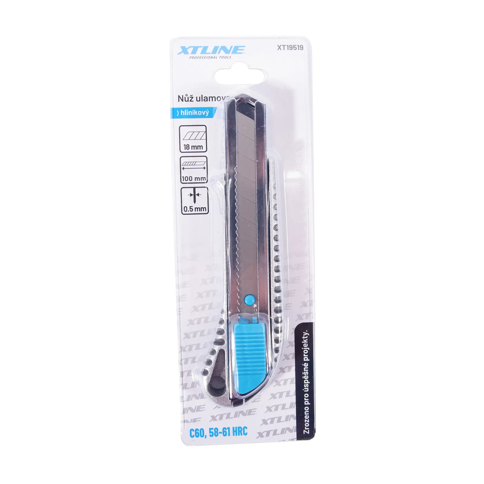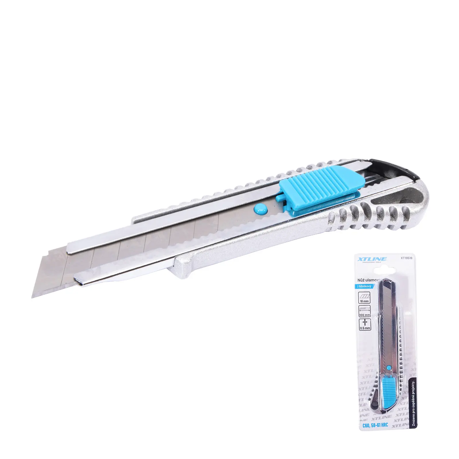 Hliníkový ulamovací nůž s kovovou vodící lištou.
