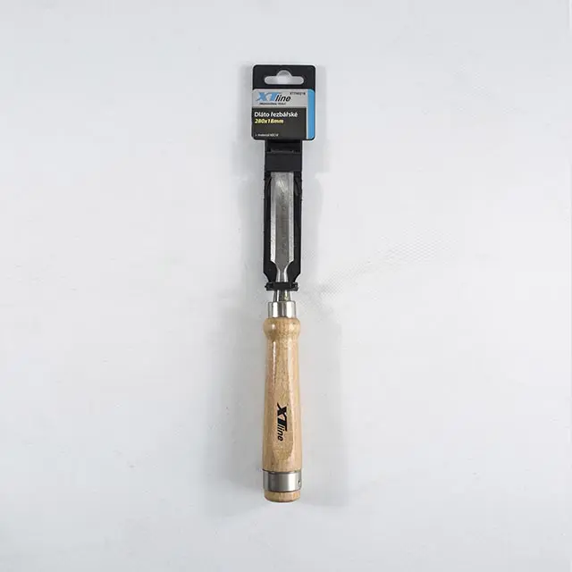 Dláto z chrom-vanadiové oceli s dřevěnou rukojetí.