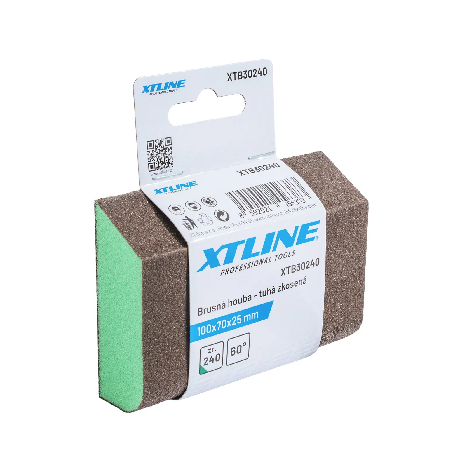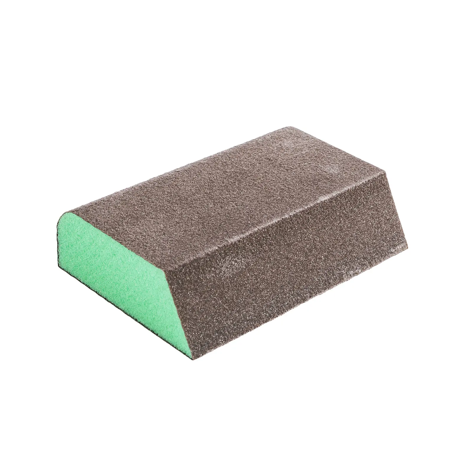 Tuhá brusná houba se zkosenou hranou je vhodná pro přesné broušení ploch, rohů a těžko přístupných míst. Zkosení umožňuje pohodlné opracování hran a přechodů, zatímco rovné plochy jsou vhodné pro běžné srovnání povrchu.