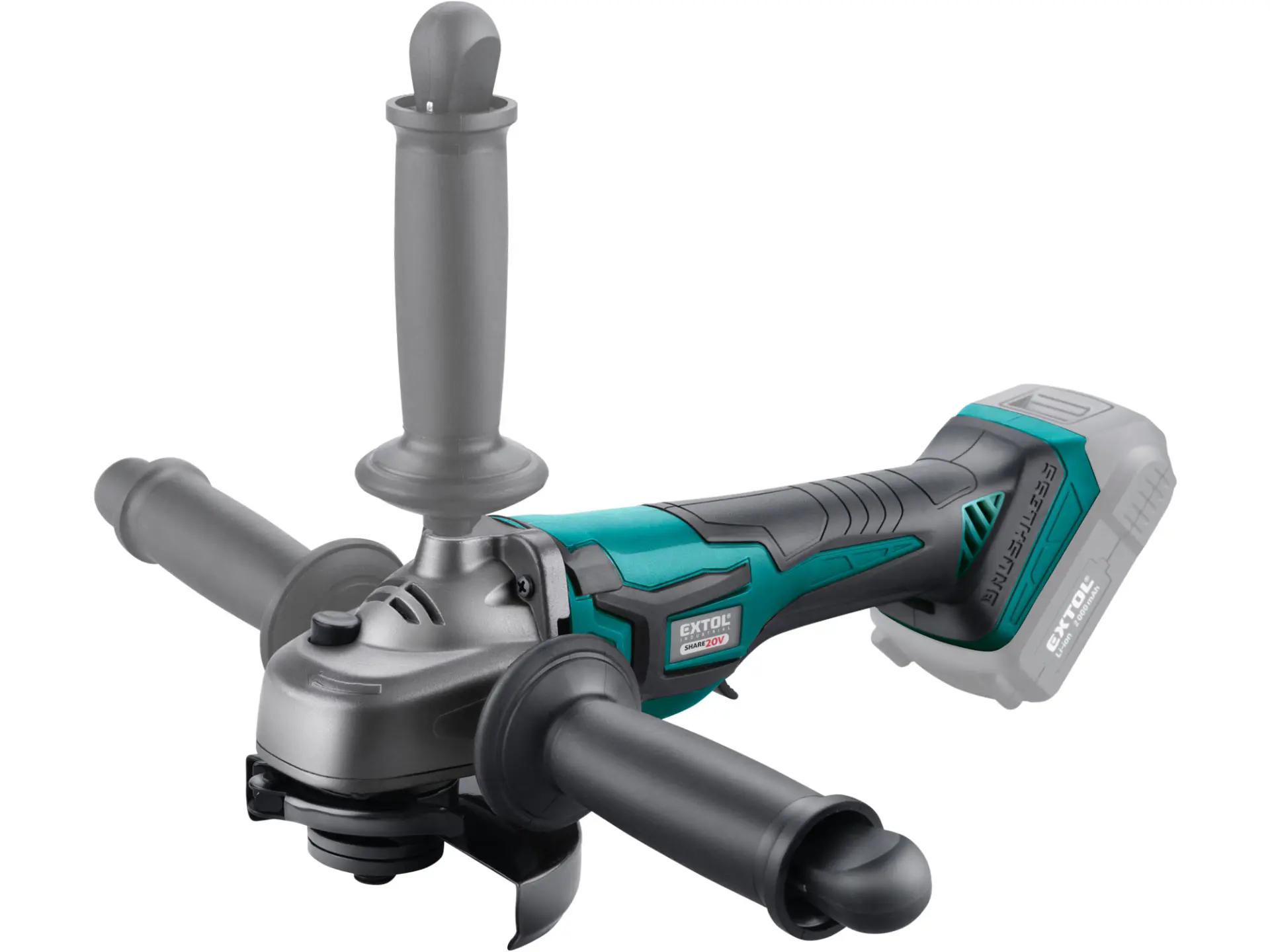Lehká a výkonná brushless aku úhlová bruska určená pro brousící a řezací práce. Bruska je poháněná nejmodernějším „brushless" motorem. Tento nový typ motoru má vyšší životnost, je výkonnější a má menší spotřebu el. energie než klasické motory s uhlíkovými kartáči. Její tělo je ergonomicky tvarováno, aby se snadno držela při práci a pogumovaná rukojeť tlumí vibrace. Hlavní výhodou této brusky je akumulátorový pohon, který dovoluje si tuto brusku vzít s sebou tam kde s ní potřebujete pracovat, bez ohledu na to, jestli tam je rozvod elektrické energie. Bruska má bezpečnostní pojistku proti náhodnému spuštění a je vybavena systémem "soft start", který nastartuje brusku bez škubnutí, čímž šetří nejen Vaše klouby, ale také ozubená kola v brusce. Pro krátkou práci dostačují jeden nebo dva 2000mAh akumulátory, které můžete rychle nabít v rychlonabíječce, pro náročnější nebo delší práci doporučujeme větší akumulátory s kapacitou 4000–8000mAh. Akumulátor lze použít ve všech typech nářadí řady EXTOL SHARE20V. Díky použité Li-ion technologii je ho možné kdykoliv dobíjet, aniž by se tím snižovala jeho kapacita. Li-ion akumulátor ztrácí energii vlivem samovybíjení velmi pomalu a vydrží dlouho nabitý a připravený k použití.