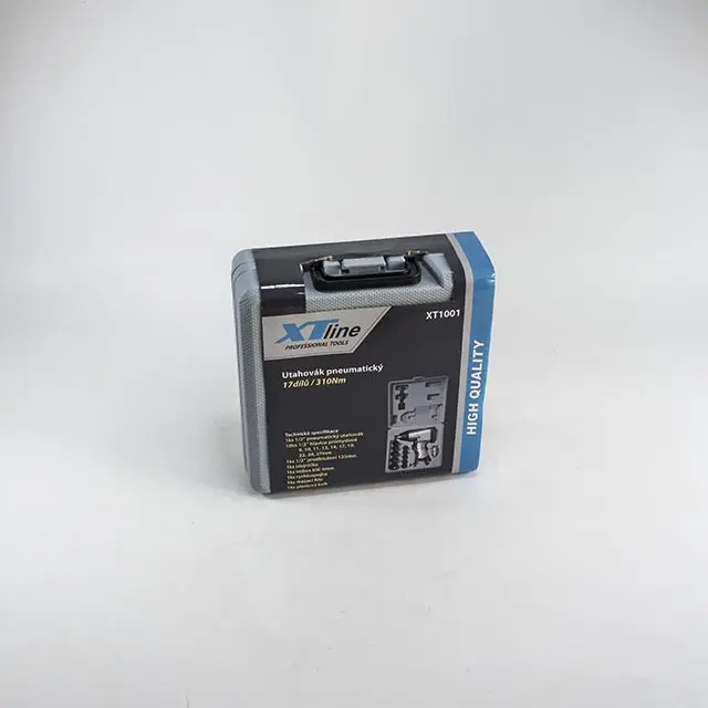 Výstupní čtyřhran 1/2", utahovací moment lze regulovat, uloženo s hlavičkami v plastovém kufru.