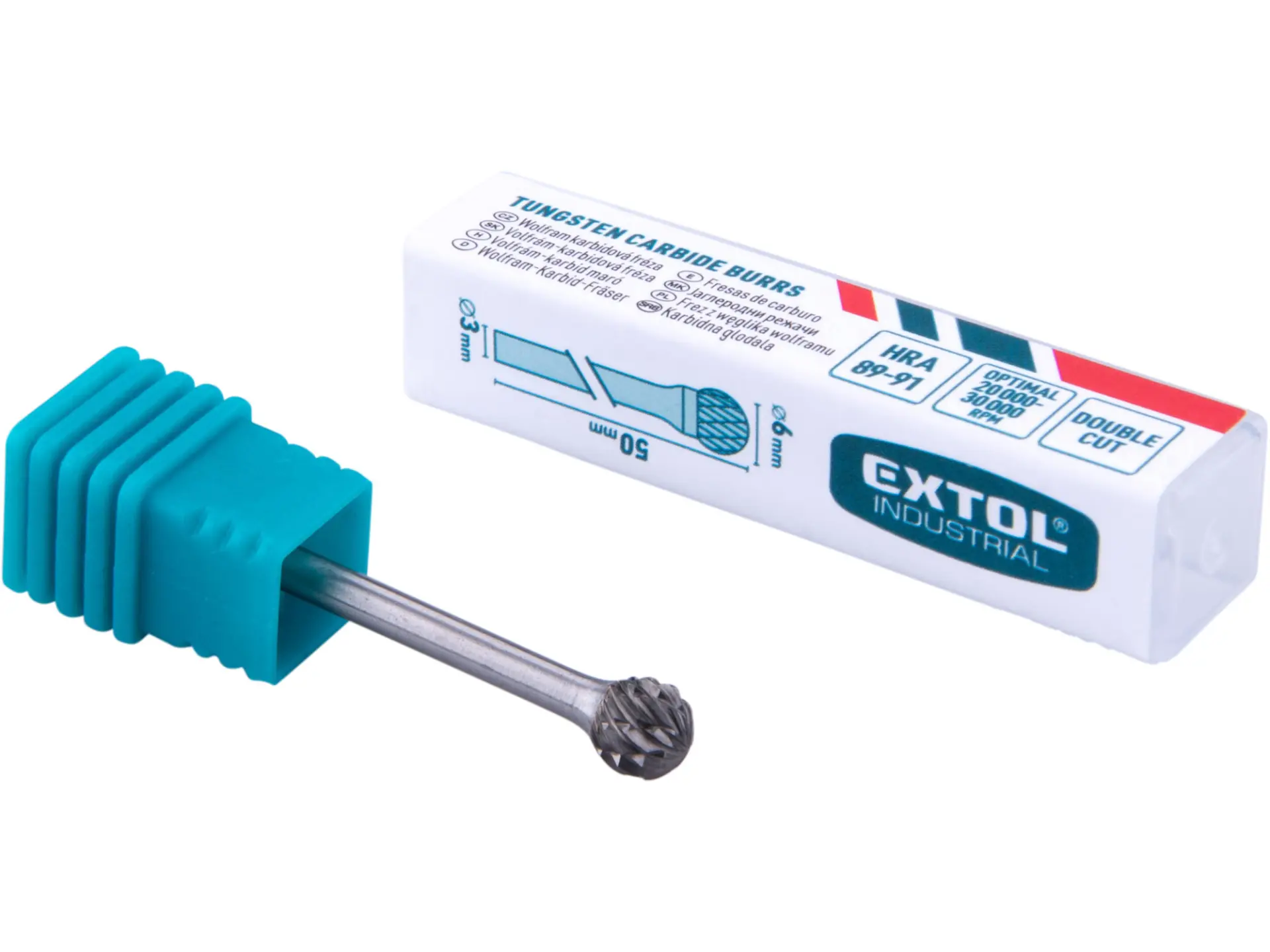 • stopkové frézy EXTOL INDUSTRIAL jsou vyrobeny z kvalitního wolfram karbidu a jsou vhodné pro odhrotování, broušení a opracování kovových materiálů jako je litina, ocelo-litina, slitiny uhlíkové oceli, nerezové oceli atd. až do tvrdosti 65HRC.