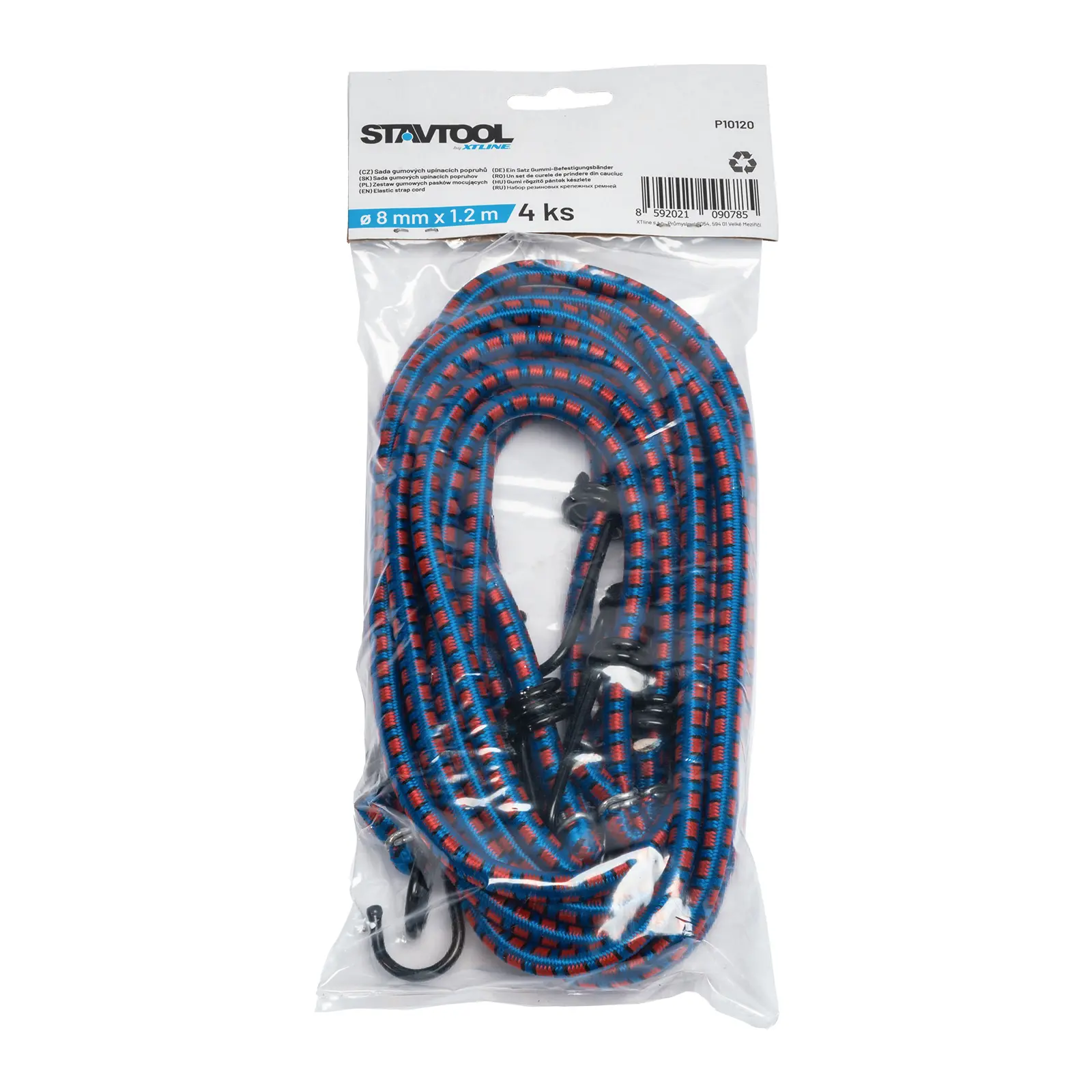 Popruhy z gumových pramínků v textilním opletení, háčky pro upevnění nákladu.