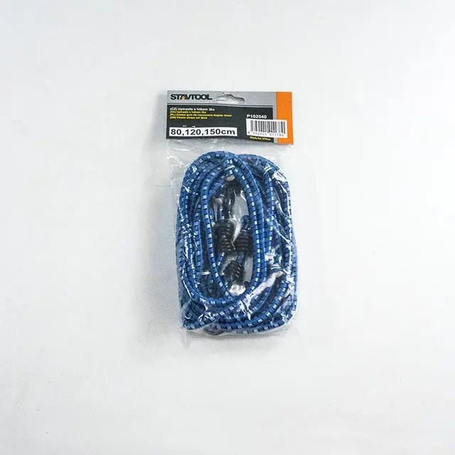 Popruhy z gumových pramínků v textilním opletení, háčky pro upevnění nákladu.