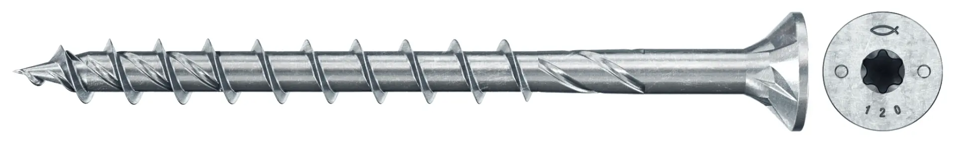 • Inovované patentované frézy v závitu vrutu výborně odvádějí třísku z otvoru, čimž snižují tření při šroubování vrutu a umožňují jeho umístění blízko k okraji bez rizika rozštípnutí.