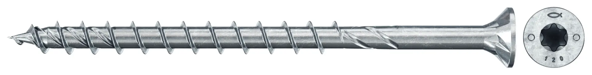 • Inovované patentované frézy v závitu vrutu výborně odvádějí třísku z otvoru, čimž snižují tření při šroubování vrutu a umožňují jeho umístění blízko k okraji bez rizika rozštípnutí.